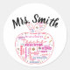 Personalised Teacher Apple Word Art Classic Round Sticker