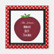 Red Apple Magnet, trimmed in black with white polka dots. Personalise by changing text and add teachers name.