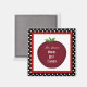 Red Apple Magnet, trimmed in black with white polka dots. Personalise by changing text and add teachers name.