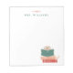 White personalised note pad with stack of books and a bookworm. You can personalised this with your teacher name or personalised with your own name. Great gift for teachers or any one in the education field.