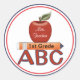 This personalised teacher sticker has a place for her name and the grade she teaches. There are circles on the outer edge with an apple, pencil and ABC.