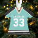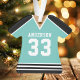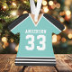 Celebrate your hockey star with this personalised teal and black hockey jersey ornament. Perfect for commemorating a special season, player, or team. Customise it with a name and number to create a unique keepsake.