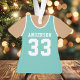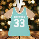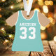 Celebrate your basketball star with this personalised teal basketball jersey ornament. Perfect for commemorating a special season, player, or team. Customise it with a name and number to create a unique keepsake.