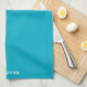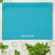 Personalised Teal Blue Plain Solid White Script Tea Towel