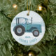Personalised Teal Blue Tractor Christmas Ornament. Add your favourite farmers name and the year for a one of a kind tractor ornament.