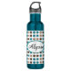 Cute and girly, electric blue water bottle with teal and brown polka dots and a teal and white oval to personalise with your own text. The background colour is customisable.