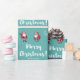 Wrap your gifts in style with this charming personalised Christmas wrapping paper! Featuring adorable Santa Claus, reindeer, and snowman characters on a soothing teal background, this design brings a playful and festive touch to your holiday presentations. Snowflakes and cheerful greetings like "Merry Christmas!" and "Happy Holidays" add extra holiday cheer. Customise it with your family name or a personal message to make your gifts truly special. Perfect for creating a coordinated look under your Christmas tree or for gifting to friends and family.