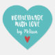 A personalised "homemade with love" sticker on a teal blue coloured background. Make it yours by adding your own name. A pretty finishing touch for all of your handmade gifts. Fun for Christmas Gifts. Designed for you by Blackberry Boulevard.