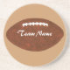 Painting of a football with a placeholder for a Team Name or your text, in white letters, is printed on beverage coasters. The background colour if light tan which can be customised. Thank you for shopping at CherylsArt on Zazzle.