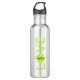 Silver and bright green - yellow personalised silver stainless steel water bottle with "LOVE" tennis ball and name monogram featuring an elegant and cute calligraphy script font.
