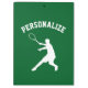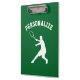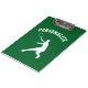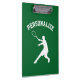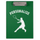 Personalise tennis coach accessories custom sports clipboard. Add your own name, team name or name of club. Nice gift idea for high school coach, mum, dad, kids league, teams etc. Tennis player silhouette logo with sporty typography template. Green or custom colour background clip board. Double sided print.