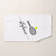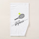 Personalised tennis towel with a simple cute tennis racket graphic and custom name or text in a feminine girly and modern pretty script font monogram. Any girls or womens tennis player would appreciate the elegant look on this modern and minimal useful tennis themed gift.