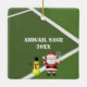 This unique tennis Christmas ornament holiday design features a green tennis court background with cutest tennis ball snowman and Santa Claus with a tennis racket. Personalise the back with a name and year!