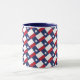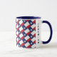 Personalised TEXAS FLAG Coffee Mug with CUSTOMIZABLE TEXT. Stylish personalised Texas flag mug with an unusual overlapping flag pattern, which creates a modern geometric design. The placeholder name appears in a bold navy blue typepface, and is turned 90 degrees. This text is customisable, so you can personalise with your name or other text. This would make a great gift for the patriotic coffee drinker, and its unusual pattern will set it apart from the usual Texas flag mugs on the market. Ideal for birthdays and Christmas, and suitable for private and business hospitality use. Matching gifts available.