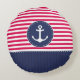 Personalised Text Blue and Red Nautical Anchor Round Cushion