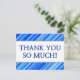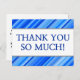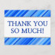 This personalised thank-you postcard design features the message "THANK YOU SO MUCH!" on the front, along with a customisable message on the back. It could be used to offer thanks to somebody who has attended a wedding, a funeral, or some other event.