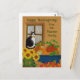 Welcome friends and family with this rustic Southwest Thanksgiving postcard. A black and white tuxedo cat sits on the sill of a Santa Fe style window with lacy curtains. A bounty of squashes and pumpkins sit on a rustic weathered blue painted table, and a trough filled with apples and a pot of sunflowers sit in front of the table. The text on the front of the card can be personalised with any names or message you desire. You can also add text to the back of the card. Feel free to message me on my home page if I can help you in any way😊