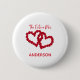 Personalise this button with her soon-to-be new last name. Hearts made with red roses is the design on this engagement gift button.  A great gift for the Future Mrs.