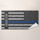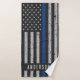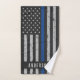 Thin Blue Line Bath Towels - American flag in Police Flag colours, distressed design . Personalise with police family name. This personalised police bath towel set is perfect for police and law enforcement families and all those who support them . COPYRIGHT © 2020 Judy Burrows, Black Dog Art - All Rights Reserved. Personalised Thin Blue Line Police Bath Towel Set