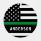Thin Green Line Flag Military Ornament, a perfect addition to your Christmas decor! Show your support for the brave men and women who protect our borders, parks, and wildlife. This modern and simple ornament features the American flag with a thin green line representing federal law enforcement officers, border patrol, game wardens, park rangers, conservation officers, army, navy, and marines.