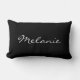 Put your initials on our monogrammed decorative boudoir pillow. You are viewing a black pillow with white script. We are showing it with the name “Melanie”. This pillow is waiting to be personalised with the name of your choice.