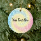This Christmas ornament features a beautiful tie dye style hippy swirl in pastel pink, yellow and blue. Perfect for someone who loves tie dye or a themed tiedye tree. Add your custom text (shows on both sides), or remove it for a plain tie dye ornament.