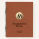 Modern to-do list journal features an elegant monogrammed design on a simple terracotta background. Custom monogram initial and name in stylish simple font with a complimentary brushed metallic gold monogram medallion.