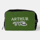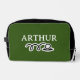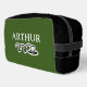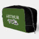 Personalised toiletry travel bag for golfer. Custom golf gifts for him or her. Green and black or custom colours. Cute design with putting hole and golf ball drawing. Great for Father's Day or Birthday.
