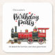 Get your party on the right track with these fun and personalised birthday party coasters! Featuring a classic red and black steam train illustration, these square coasters are perfect for a train-themed celebration. The words "Birthday Party" are displayed in a playful black script, and you can personalise them with the birthday kid's name at the top, as shown with "Christopher's." The fun tagline "All aboard the fun train, next stop: good times!" is at the bottom. These durable coasters not only protect your surfaces but also add a special touch to your train-themed birthday bash.