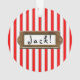 Creative trampoline keepsake ornament holiday gift featuring trampoline-jumping Santa Claus and special place for personalised name on back.