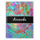 Add a name to this Digital Art abstract modern fluid art notebook. Blue, teal, purple, black, red yellow colourful print.