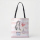 Personalised Travel Paris Pink Stripes Sketch Tote Bag with a girl and the Eiffel Tower. Personalise with your or a friends name.