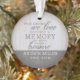 Remember your loved ones year round with this personalised memorial keepsake ornament. The treasured memory ornament features an optional photo on the back. The ornament reads "when someone we love becomes a memory that memory becomes a treasure". Personalise with your loved ones name and dates.