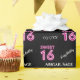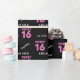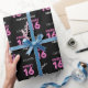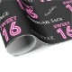 This unique Sweet Sixteen wrapping paper design features "Sweet Sixteen" in hot pink text and a black background. Personalise with a name and birthday date!