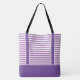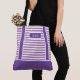 Cute Trendy Purple & White Stripes Pattern With Name Large Size Tote Bag Design.