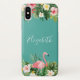 Personalised with Name, Watercolor Tropical Floral with Pink Flamingo Teal iPhone Case