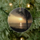 Celebrate a first holiday together or create a personal souvenir of your honeymoon with this tropical ocean view ornament. Customise or delete the text on this holiday ornament with a tropical beach sunset scene, framed by a palm tree.