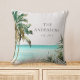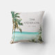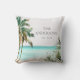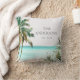 Bring tropical charm to your space with this personalised throw pillow! Featuring watercolor palm trees, a blue beach scene, and coastal vibes for beach house decor.