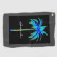 The tropical turquoise palm tree golf towel is a unique design in bright colours of turquoise, green and blue with a grey and black background and name in white script centred on towel. Great gift idea for lady golfers.
