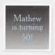 Something for the guy who is celebrating his 50th birthday! The background is dark grey at the top and blends into lighter grey at the bottom. The stylish light blue typography is personalised with the name of the birthday boy followed by the text "is turning 50! The text colour may be changed using the on-screen edit menu. These paper dinner napkins match a "turning 50" birthday party photo invitation and other matching party accessories to help you celebrate this milestone event.