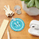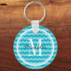 Personalised turquoise blue chevron pattern key chain with cute zig zag lines. Monogrammed keychain for girly women and teen girls. Preppy zigzag design with monogram name initial letter and stylish script typography. Cute favour or Birthday gift idea. Customisable background colour.