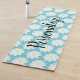 Personalised turquoise daisy flower pattern custom yoga mat for workout. Pretty elegant design for yoga lessons teacher, class trainer, coach or gym instructor. Fun personal fitness equipment gift for him or her. Add your own beautiful name, funny quote or monogram letters. Soft sports material equipment for yoga poses. Classy brush script typography template. Novelty Holiday or Birthday gift ideas for wife, mum, friend, sister, daughter, girlfriend, wedding bride, bridesmaids, co worker, retired person, lady boss, mother, aunt, grandma etc. Customisable turquoise blue background colour with cute floral print.