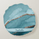 Personalised Turquoise Teal Gold Marble Agate Round Cushion