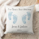 Personalised Twin Baby Boys Blue Footprint Cushion