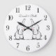 Whimsical cute watercolor for twins baby elephants large nursery clock. A perfect baby shower or new baby gift. Add your baby's names.