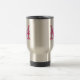 Personalised name typography monogram coffee to go travelmug. Vintage monogrammed coffeemug with stylish script letters. Cute birthday or wedding favour gift idea for men and women (his and hers). Stylish metal cup with elegant pink and white colours. Available as big extra large oversized jumbo mug and to go travel mug. Double sided design. Shiny silvery silver steel colour.
