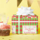 This festive and fun personalised Ho! Ho! Ho! ugly tacky Christmas sweaters wrapping paper has a red and green argyle pattern background with two ugly Christmas sweaters with Christmas trees and Santa faces on them in red, green, yellow and blue. There is also a pair of mittens with snowflakes on them and customisable text boxes that you can change out how you want. If you need any matching items, or if you need assistance or changes, please email niteowlstudio@gmail.com.