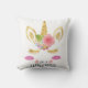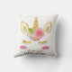Unicorn Face With Eyelashes Personalised Name Throw Pillow.