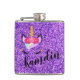 Personalised Unicorn Purple Glitter Whiskey Flask