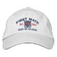 A classic crossed anchors nautical style with a UK flag applique, a custom personalised embroidered cap for a first mate of special occasions.